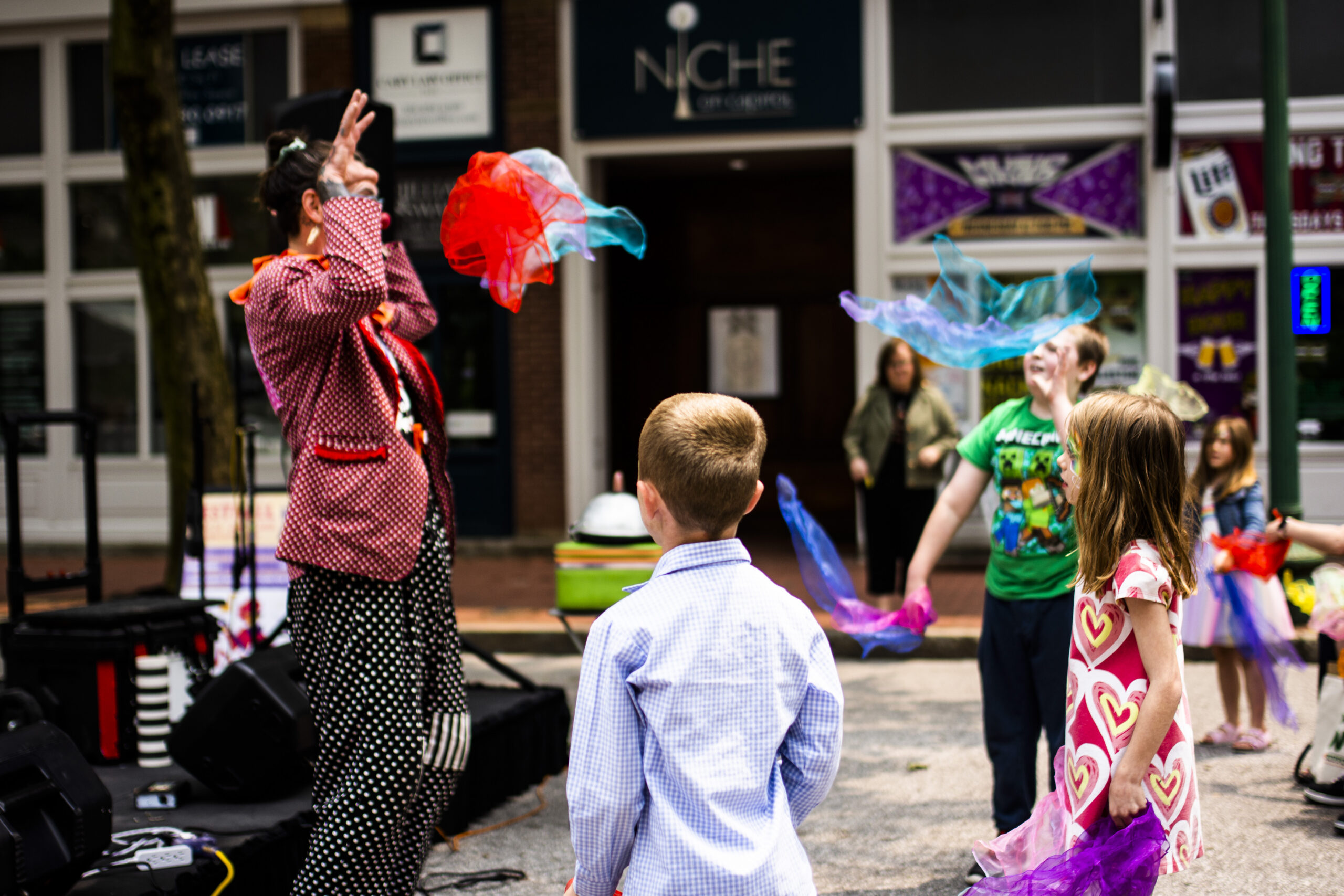 FestivALL Princess (Jude Binder), O’Ryan the O’Mazing, public art projects, and more will add color and fun to many events throughout FestivALL. Location: Various events during FestivALL